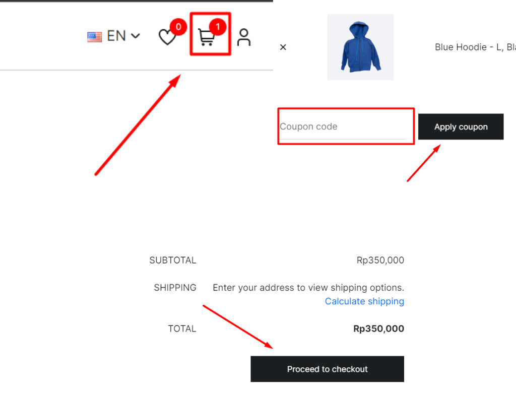 - Insert coupon code (if available) in the “Coupon code” column and click on “Apply coupon”